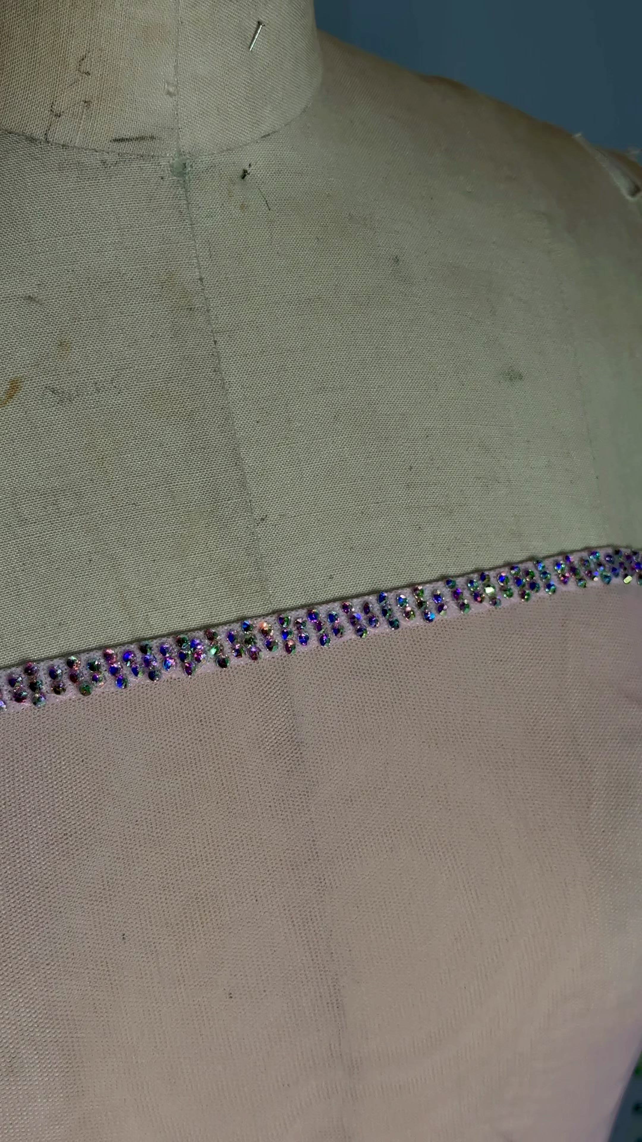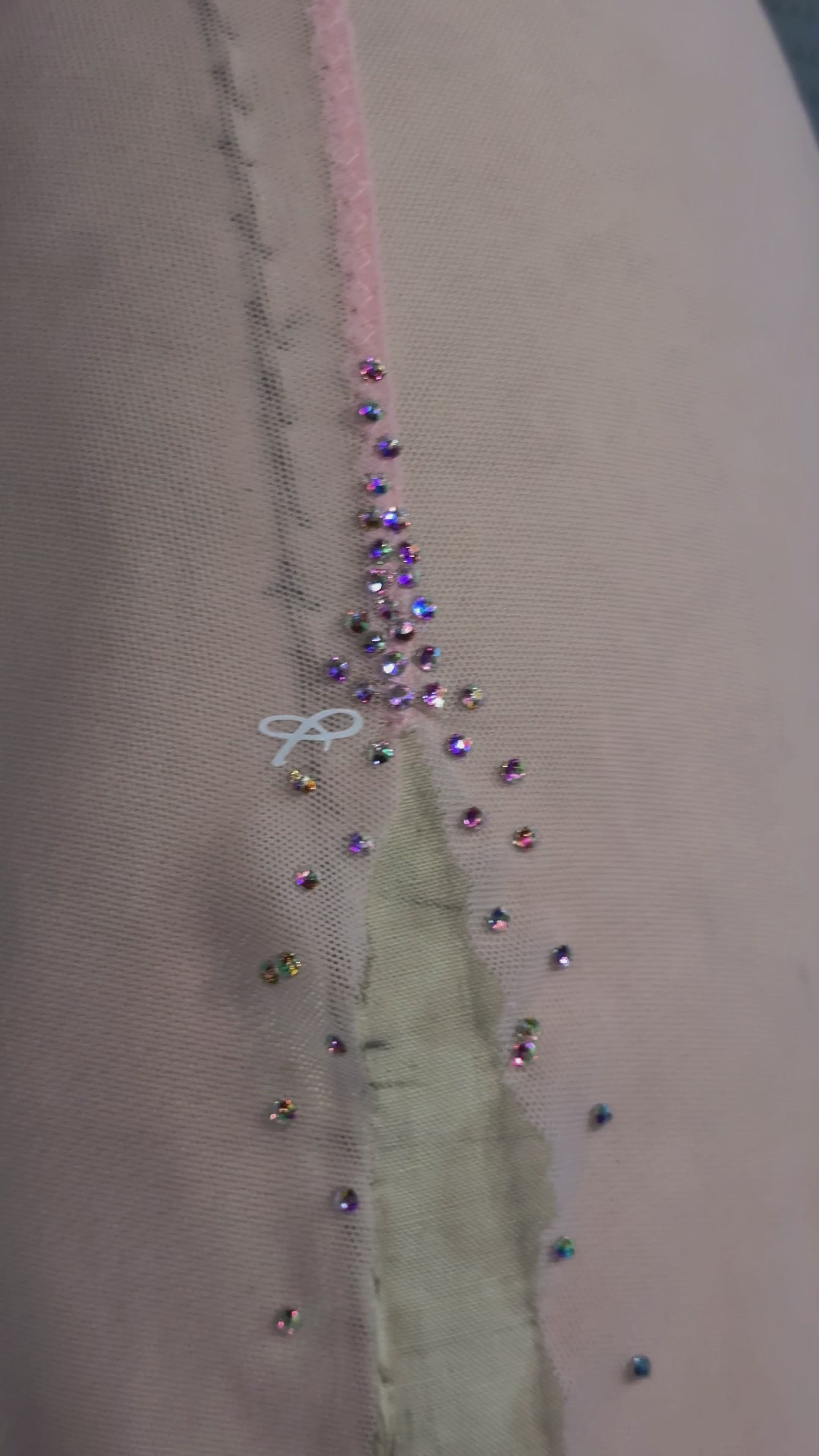 Each rhinestoned piece has hundreds of individually places rhinestones, here's a breakdown: